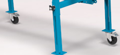 The supports can have wheels. Wheel type and form is chosen based on the ground it will travel and the mass on the conveyor. As standard, all quoted wheels are designed for cement floors.